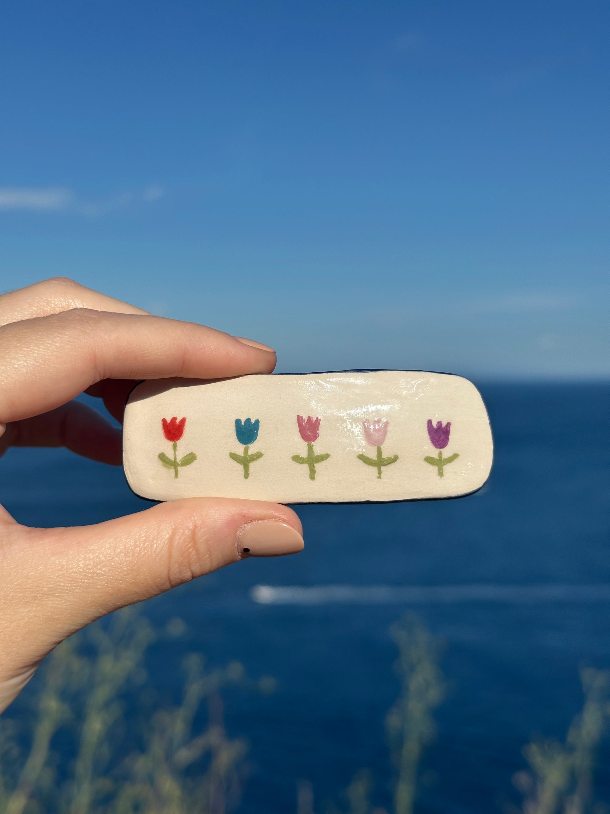 Clip per capelli in ceramica, tutte diverse, tutte fatte e dipinte a mano da me.